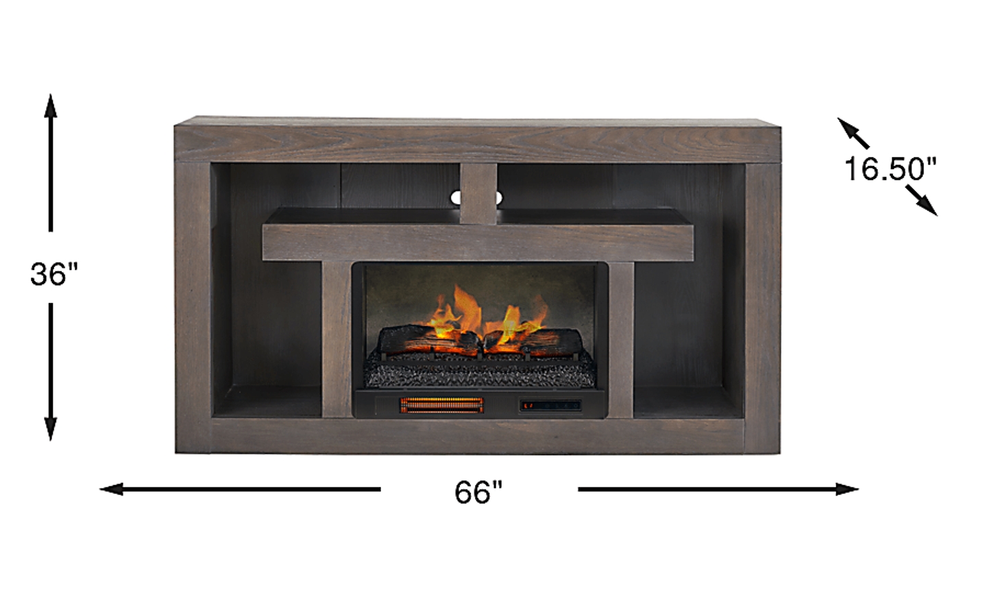 Nights of warmth and connection glow with the beautifully balanced symmetry and simple yet thoughtful details of the Brookland Park collection, creating a serene foundation for your home entertainment center. Grounded in natural charisma and transitional style, this console is finished in espresso black. Its clean rectangular frame offers a handsome silhouette, while the geometric open shelving with rear wire management holes provides plenty of space to organize media devices and display decorations. The included removable log fireplace features flickering flames and faux embers, working with or without heat for a warm ambiance year-round.