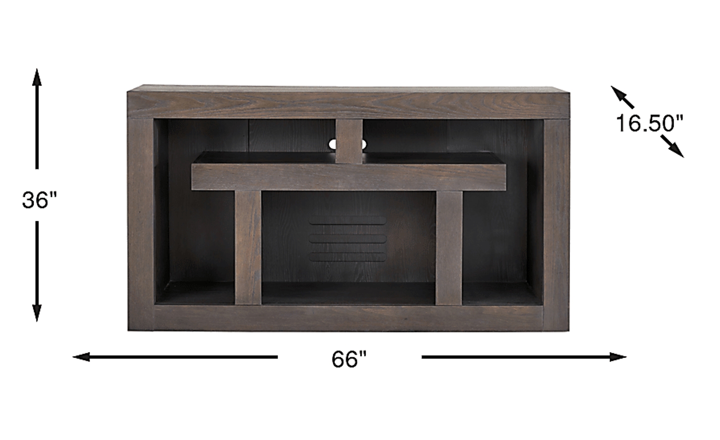 Nights of warmth and connection glow with the beautifully balanced symmetry and simple yet thoughtful details of the Brookland Park collection, creating a serene foundation for your home entertainment center. Grounded in natural charisma and transitional style, this console is finished in espresso black. Its clean rectangular frame offers a handsome silhouette, while the geometric open shelving with rear wire management holes provides plenty of space to organize media devices and display decorations.
