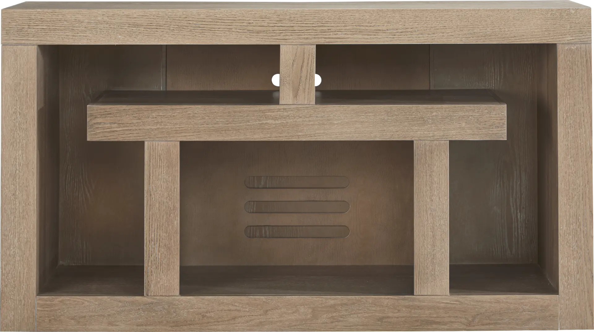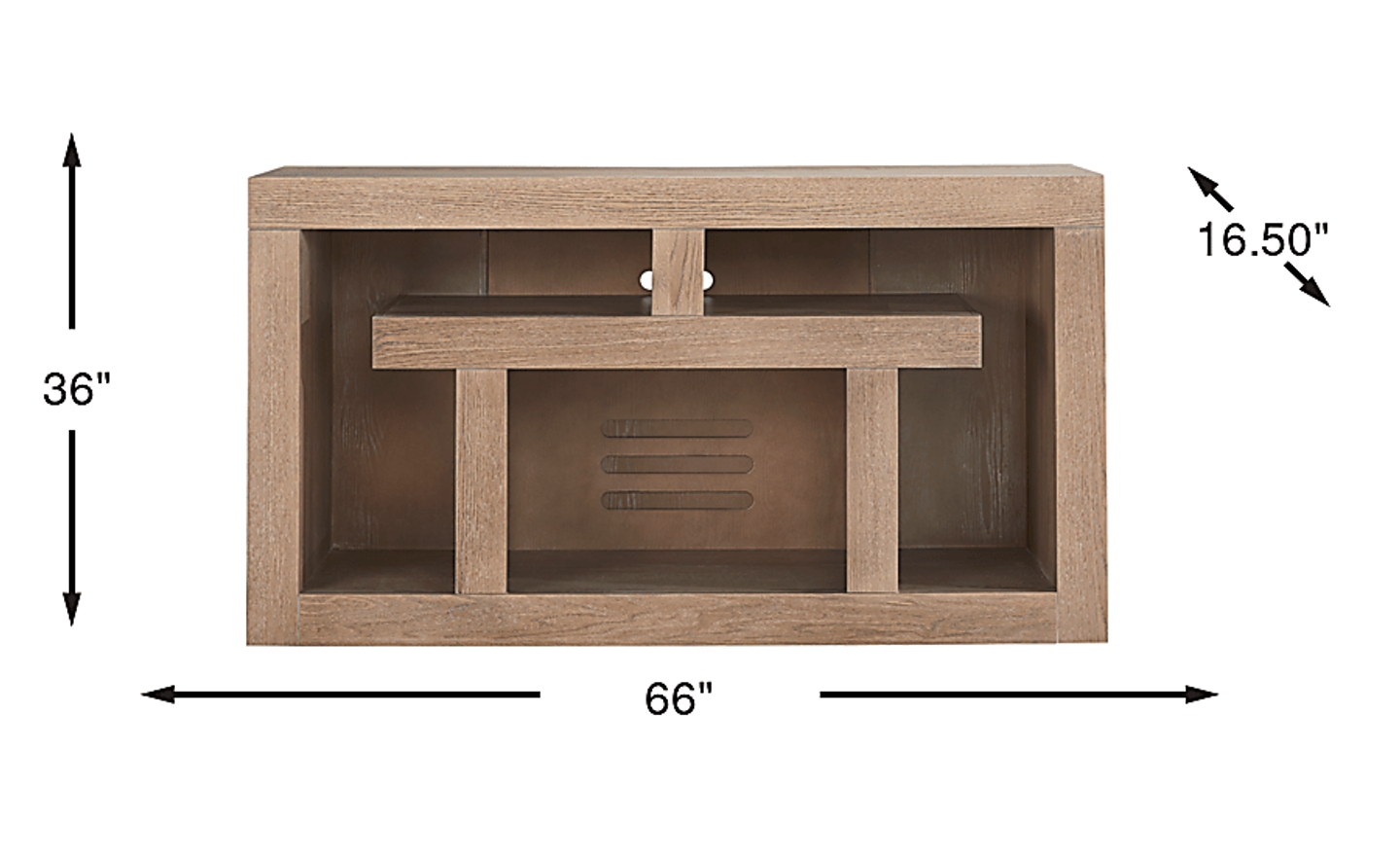Nights of warmth and connection glow with the beautifully balanced symmetry and simple yet thoughtful details of the Brookland Park collection, creating a serene foundation for your home entertainment center. Grounded in natural charisma and transitional style, this console is finished in a soft light brown. Its clean rectangular frame offers a handsome silhouette, while the geometric open shelving with rear wire management holes provides plenty of space to organize media devices and display decorations.