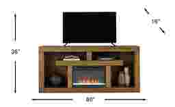 Keep storage simple and sleek with the Brookland Park console. This contemporary piece, made with wood solids, provides smooth surface space for a TV on top and an open storage and display area below. The back panel has pass through holes for wire management, while the brown finish makes the console decorator friendly. This piece comes with an electric "crystal" fireplace.