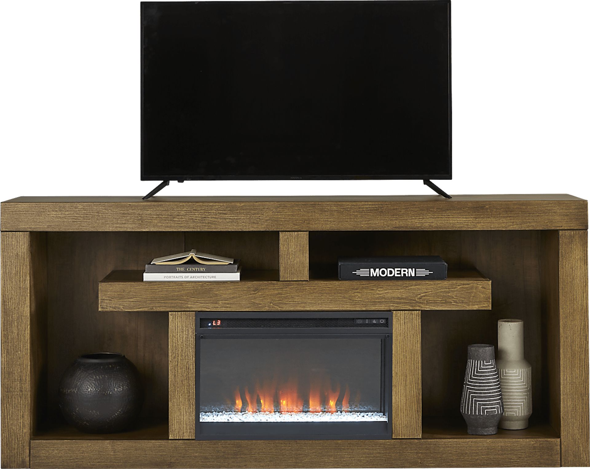 Brookland Park Brown 80 In. Console With Electric Fireplace