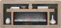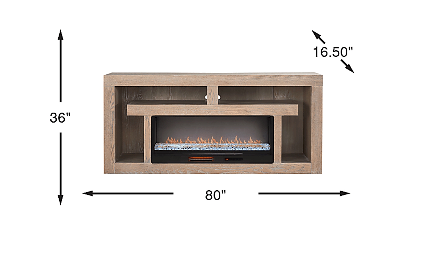 Nights of warmth and connection glow with the beautifully balanced symmetry and simple yet thoughtful details of the Brookland Park collection, creating a serene foundation for your home entertainment center. Grounded in natural charisma and transitional style, this console is finished in a soft light brown. Its clean rectangular frame offers a handsome silhouette, while the geometric open shelving with rear wire management holes provides plenty of space to organize media devices and display decorations. The included energy-saving LED firebox with remote-controlled heat and ambient lighting features four color-changing options, creating a warm and cozy atmosphere at the touch of a button.