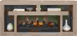 Nights of warmth and connection glow with the beautifully balanced symmetry and simple yet thoughtful details of the Brookland Park collection, creating a serene foundation for your home entertainment center. Grounded in natural charisma and transitional style, this console is finished in a soft light brown. Its clean rectangular frame offers a handsome silhouette, while the geometric open shelving with rear wire management holes provides plenty of space to organize media devices and display decorations. The included removable log fireplace features flickering flames and faux embers, working with or without heat for a warm ambiance year-round.