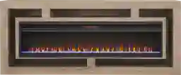 Yes, the included firebox offers significant aesthetic flexibility. It features four color-changing options for the flames and ambient lighting, all of which are remote-controlled. This allows you to transition from a traditional warm amber glow to more modern lighting schemes at the touch of a button.