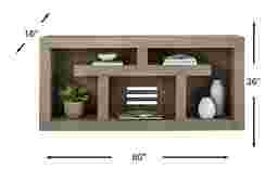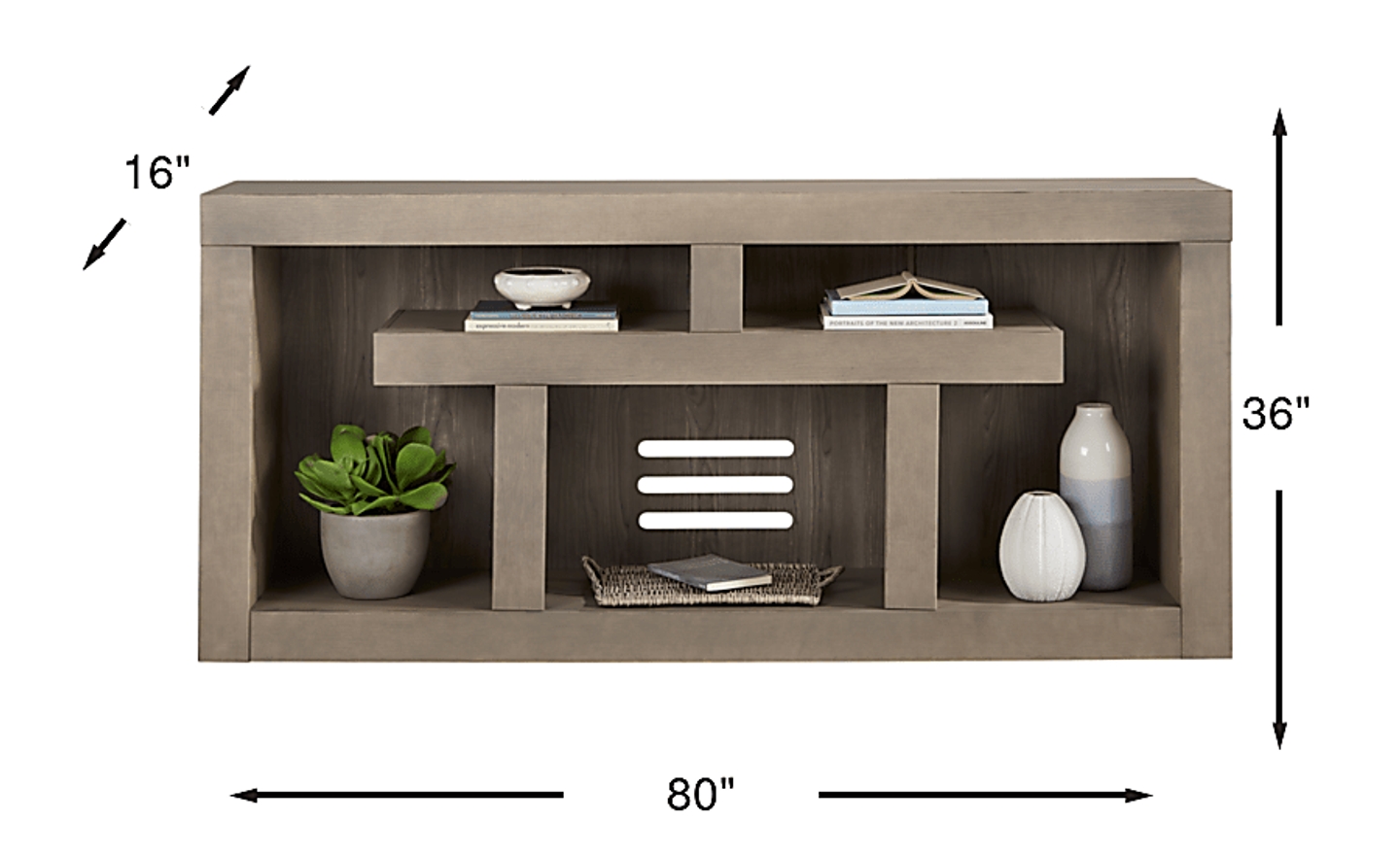 Keep storage simple and sleek with the Brookland Park console. This contemporary piece, made with wood solids, provides smooth surface space for a TV on top and an open storage and display area below. The back panel has pass through holes for wire management, while the gray finish makes the console decorator friendly.