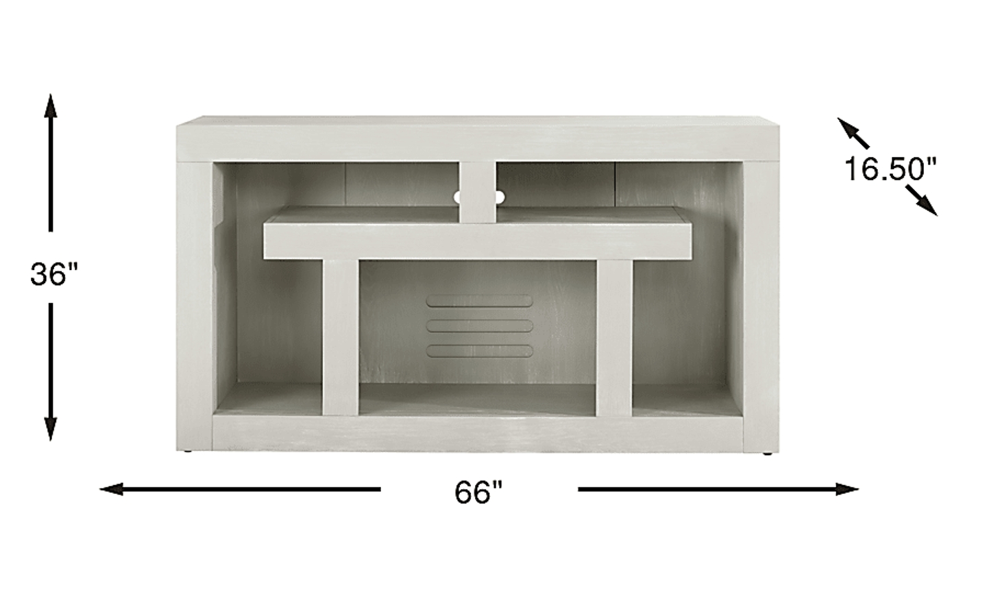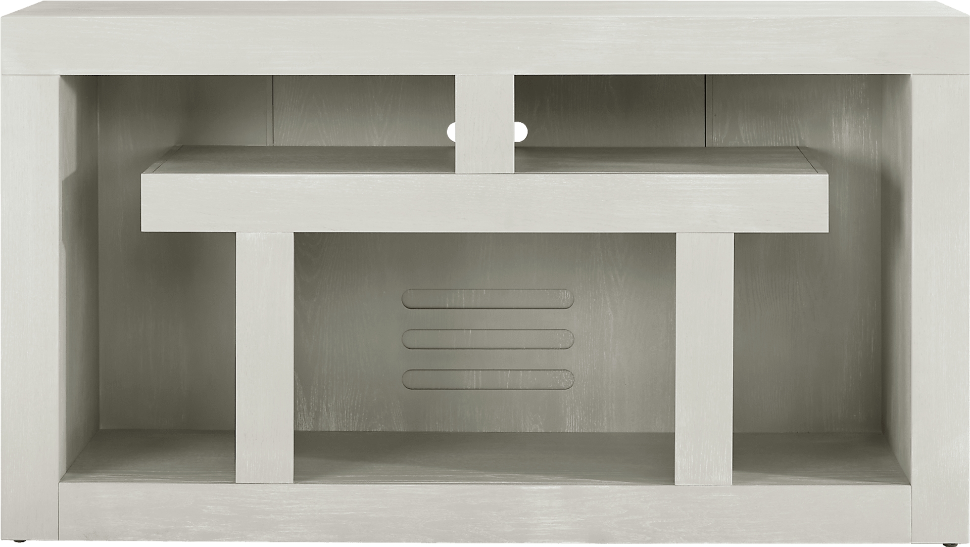 Nights of warmth and connection glow with the beautifully balanced symmetry and simple yet thoughtful details of the Brookland Park collection, creating a serene foundation for your home entertainment center. Grounded in natural charisma and transitional style, this console is finished in a soft light gray. Its clean rectangular frame offers a handsome silhouette, while the geometric open shelving with rear wire management holes provides plenty of space to organize media devices and display decorations.