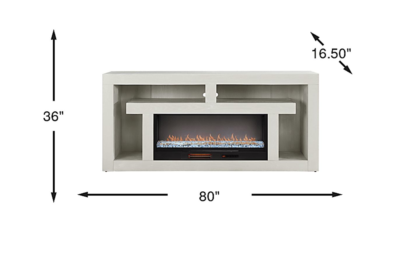 Nights of warmth and connection glow with the beautifully balanced symmetry and simple yet thoughtful details of the Brookland Park collection, creating a serene foundation for your home entertainment center. Grounded in natural charisma and transitional style, this console is finished in a soft light gray. Its clean rectangular frame offers a handsome silhouette, while the geometric open shelving with rear wire management holes provides plenty of space to organize media devices and display decorations. The included energy-saving LED firebox with remote-controlled heat and ambient lighting features four color-changing options, creating a warm and cozy atmosphere at the touch of a button.