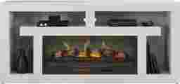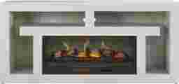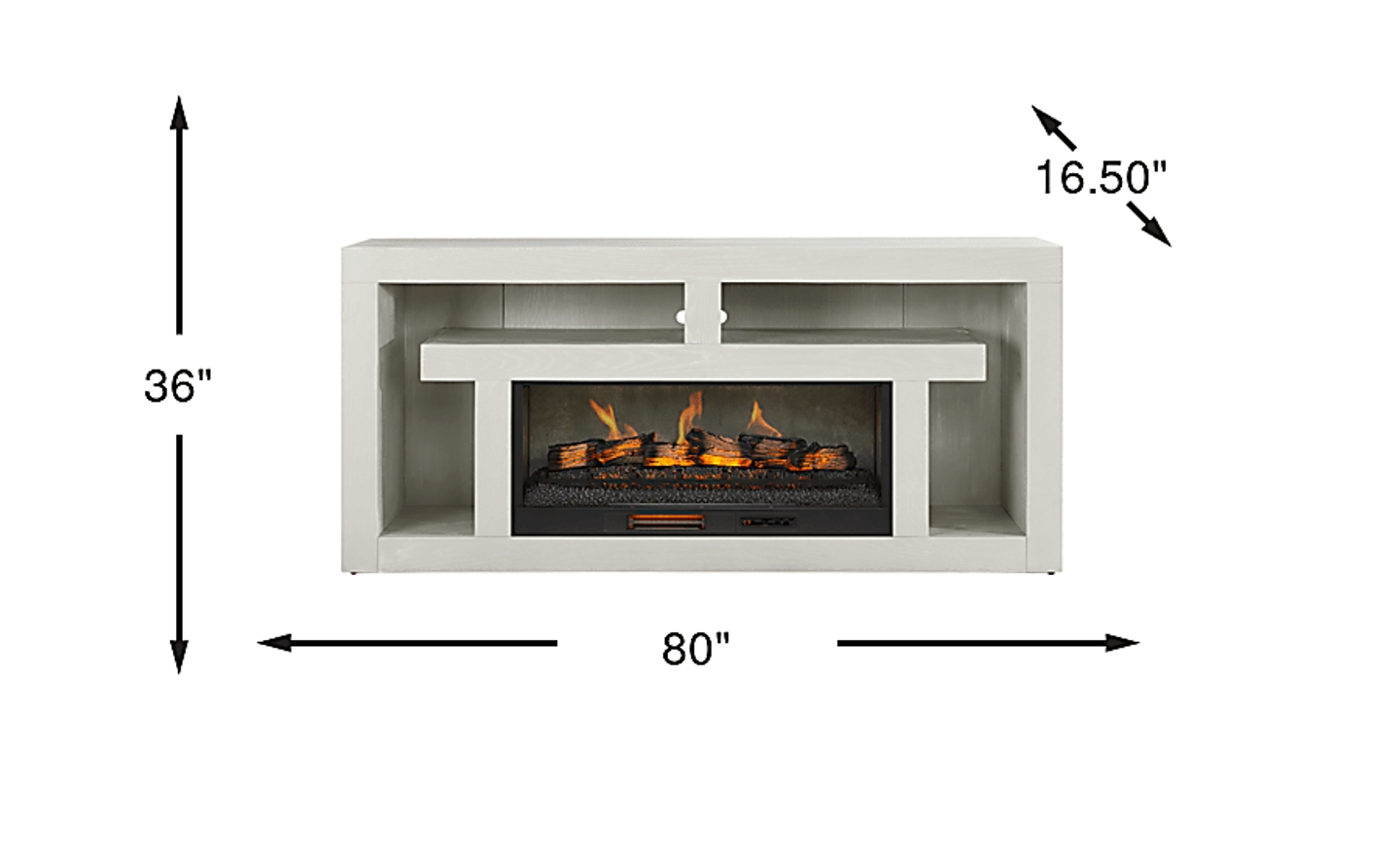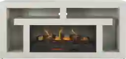 Nights of warmth and connection glow with the beautifully balanced symmetry and simple yet thoughtful details of the Brookland Park collection, creating a serene foundation for your home entertainment center. Grounded in natural charisma and transitional style, this console is finished in a soft light gray. Its clean rectangular frame offers a handsome silhouette, while the geometric open shelving with rear wire management holes provides plenty of space to organize media devices and display decorations. The included removable log fireplace features flickering flames and faux embers, working with or without heat for a warm ambiance year-round.