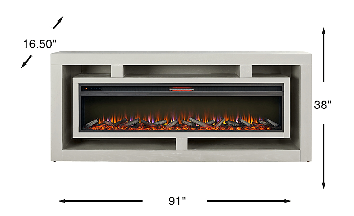 Brookland Park Light Gray 91 In. Console With Electric Log Fireplace