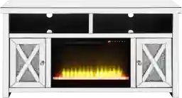 Brighten up your living space with the Brookley 59 inch console with an electric fireplace. In an alluring mirrored and faux diamond finish to showcase your glamourous side. The media shelf has cable management cutouts to keep cables out of sight to preserve the beautiful look of the piece. The touch panel LED fireplace features adjustable temperature control and a timer function. Customer assembly is required.