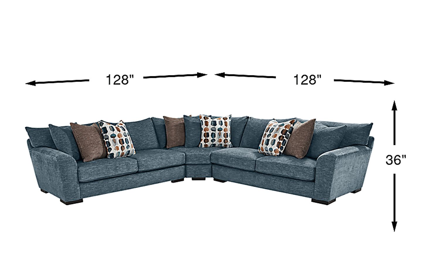 The inviting, comforting aesthetic of the Brooklyn Gardens sectional brings home all the soothing character of your favorite corner coffee shop. A deep blue color and thick woven twill fabric define this spacious transitional piece. Beneath the fabric, a soft feather blend offers support and unparalleled comfort in the throw pillows, reversible seat cushions, and pillow-style back cushions. Deep seats provide ample room to fully stretch out, and a d-ring system keeps the seat cushions clipped firmly in place. Rolled wedge arms and dark wood block legs complete the clean, inviting look. Upholstery: 80% polyester, 20% rayon.
