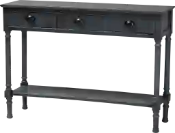 Reinvent your entryway with the elegant and handy Brookpark console table. Constructed from sturdy wood showcasing and striking dark blue gray finish. Three large drawers provide ample space for concealed storage, while the rectangular tabletop and lower shelf provide space to display decorations. This console features ring-turned legs that lend a classic look, while metal drawer handles add a modern touch. Customer assembly is required.