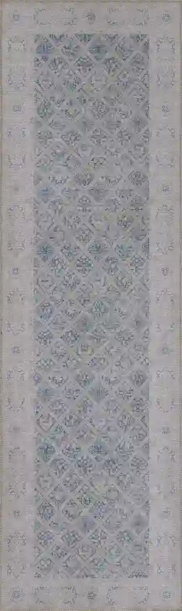 This rug features a traditional aesthetic inspired by vintage Bokhara and Indian-inspired paisley motifs. Its rich blue tones and geometric symmetry allow it to complement classic, transitional, or eclectic interiors. It serves as a beautiful foundation that can anchor a hallway lined with family photos or add a pop of historical character to a modern, neutral-toned kitchen.
