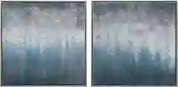 The Brouillette multi artwork, set of 2 shouts movement and mood as it moves across the canvas and the color only serves to intensify the emotion displayed. This piece uses subtle variations in technique and metallic color combinations to display a three-dimensional, hand painted, piece of art that displays an abstract silver and blue image that has been embellished with glitter. Surrounding this piece is a strong champagne frame.
