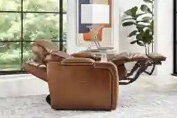 This recliner is crafted with top-grain leather where the body touches for a premium feel and natural durability. To maintain its appearance, we recommend regular dusting with a soft, dry cloth and conditioning the leather every 6-12 months to keep it supple. Because top-grain leather is a natural material, it is best to place the chair away from direct sunlight or heat sources to prevent the hide from drying or fading over time.