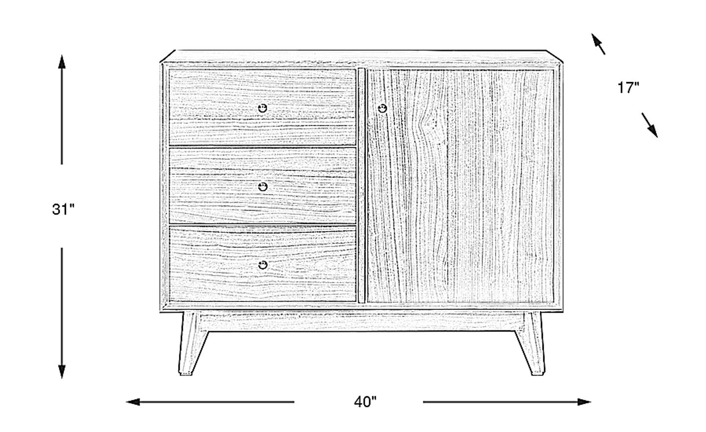 Yes, with a depth of just 17 inches, this piece is an excellent choice for space-constrained areas like entryways or urban apartments. Its 40-inch width offers significant storage and surface area without obstructing high-traffic pathways. Additionally, the mid-century inspired tapered, canted legs lift the cabinet off the floor, creating an open, "airy" look that helps a small room feel larger.