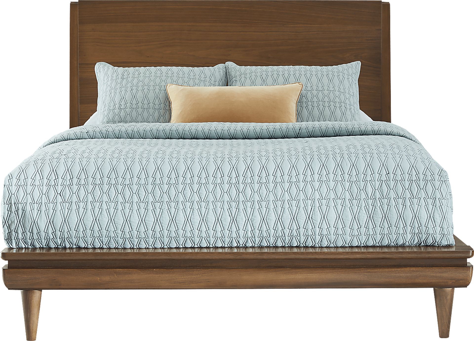 Your bedroom will be elevated by the stylish Broxbern platform bed. The sleek lines of this bed pair with walnut veneers in a rich walnut-brown finish. This bed features a classic platform construction to give it a distinct and simple look. Tapered legs are the perfect finishing touch. Mattress and foundation (if required) sold separately. Bed shown is queen size.