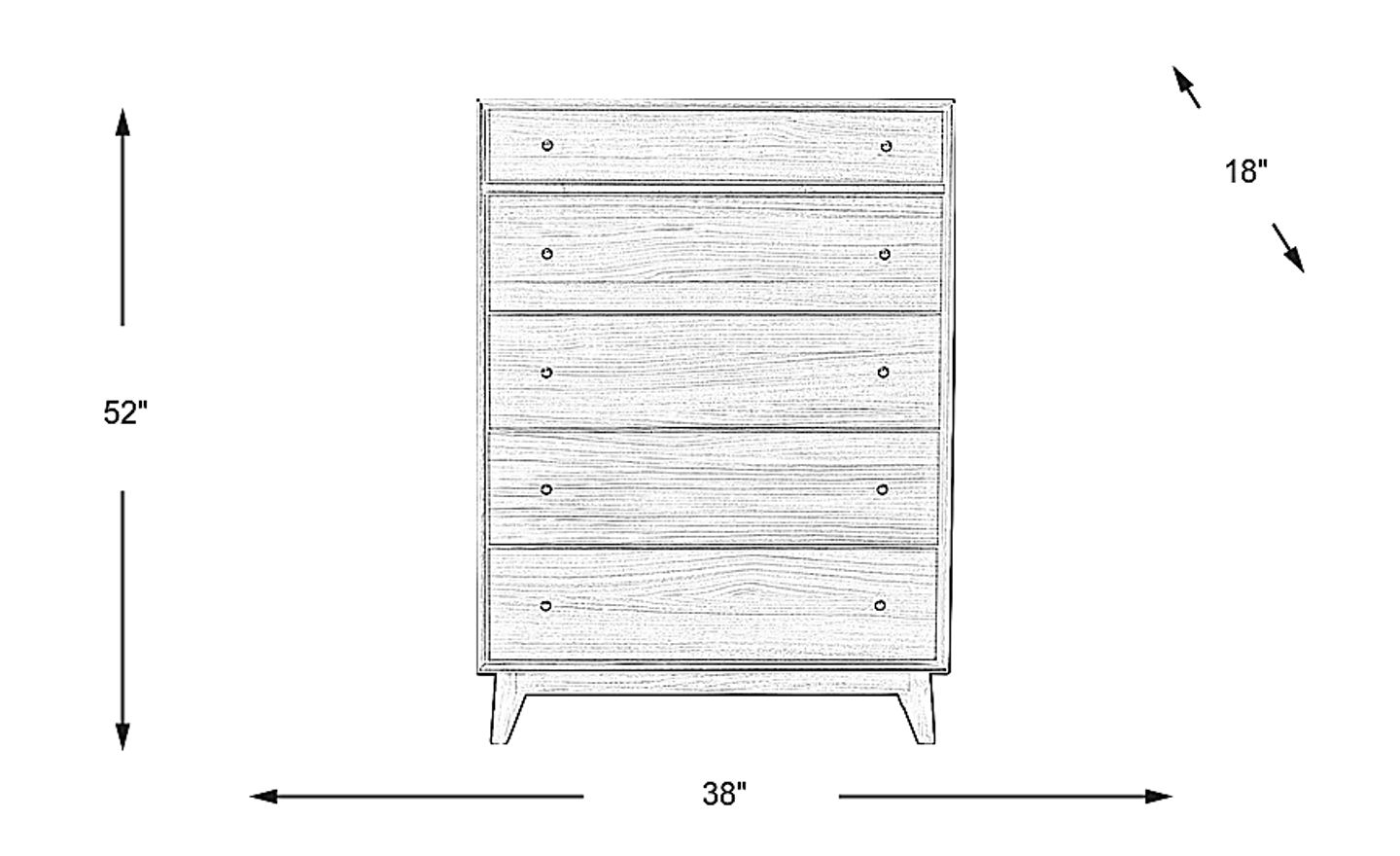 Get more storage for your bedroom with the Broxbern chest. Five vertically arranged drawers keep storage handy and compact. This chest has a mid-century modern design that's highlighted by walnut veneers in a walnut finish and gold colored metal hardware.