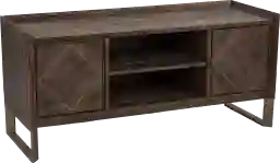 Modernize your rustic living space with this reclaimed wood Brushboro media console. A spacious tabletop holds your flat screen TV or a collection of dcor pieces, while cabinets and shelves tuck away movies and electronics. Restored wood and metal inlays form unique diamond shapes on the rustic doors, bringing a sleek, contemporary feel to your living area or game room. Organize your space in style when you bring home this reclaimed wood media stand. Customer assembly is required.