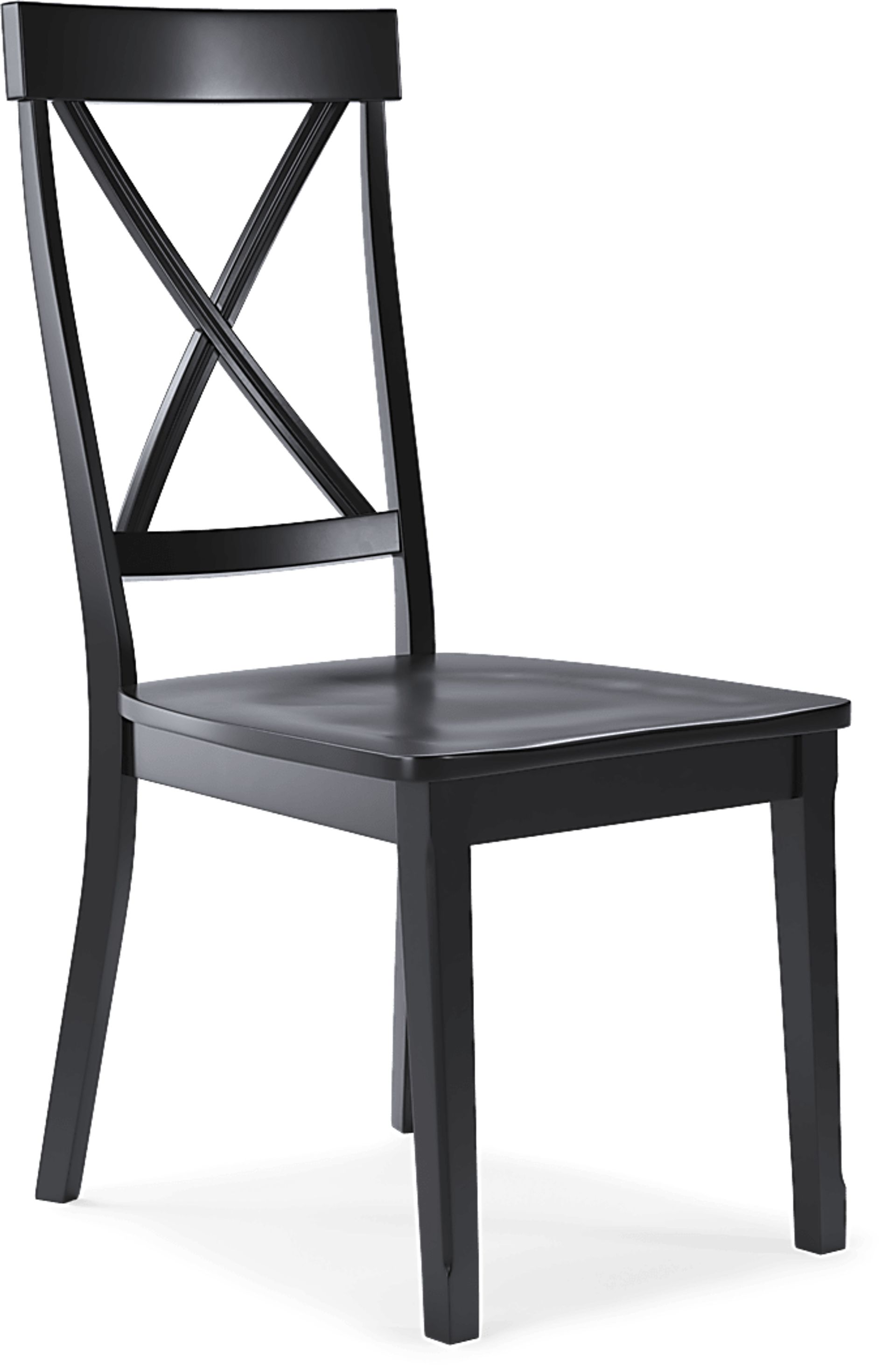 The charming county cottage style of the Brynwood side chair is emphasized with its rustic silhouette and X-back seat. Crafted of wood solids, the black finish makes a perfect complement to your dining area.