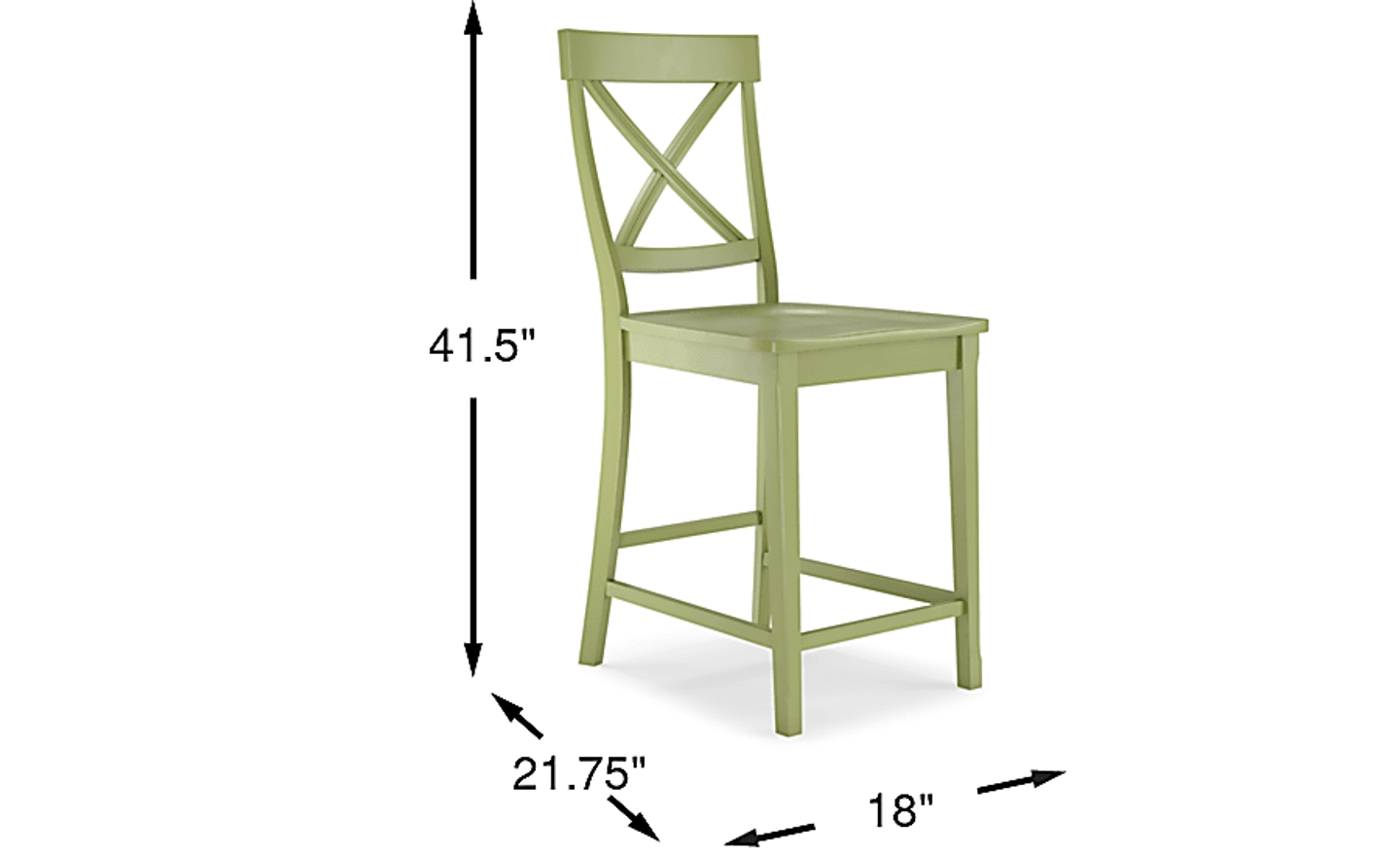 The charming county cottage style of the Brynwood stool is emphasized with its rustic silhouette and X-back seat. Crafted of wood solids, the green finish makes the perfect complement to your dining area, bar, or den. Useful as an extra seat, or with its matching table, this stool leaves an inviting impression your guests will enjoy.