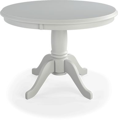 The country styling of the Brynwood pedestal table offers a fresh look and a charming silhouette. A clean white finish complements the elegant slope of the pedestal base, giving this table a chic, timeless appeal. The 42" round top is perfect for close family get-togethers, setting just the right tone for a cozy gathering place.