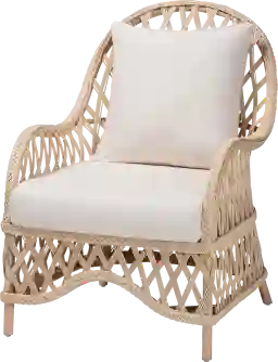 Relax and unwind in an embrace of paradise with the stunning Brytton beige accent chair. This bohemian piece is handcrafted from natural rattan by skilled artisans. Its smooth silhouette features a lovely, braided design while forming cozy armrests. The Brytton will arrive fully assembled and is fitted with a removable seat cushion and pillow upholstered in plush fabric. Showcasing an airy, carefree nature, the Brytton elevates any setting. Rattan is a product of nature and may have variations in areas such as, but not limited to, color, pattern, grain and texture. The hair-like strands of rattan/rattan-fiber are common due to the nature of the material.