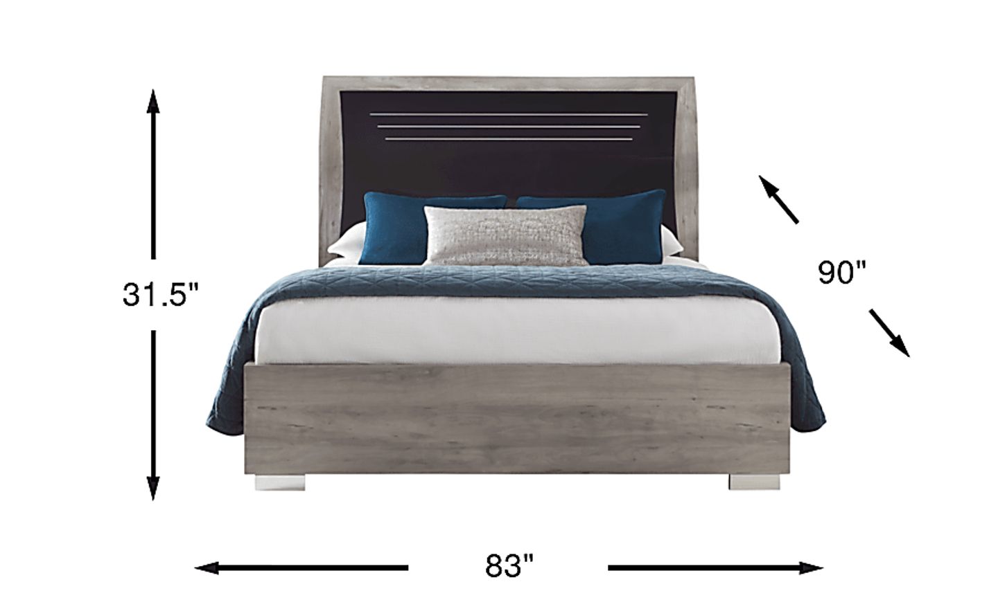 Bring upscale style to your bedroom with the Buccone Heights bed. Featuring sleek lines and a wood grain-inspired pattern, this bed combines contemporary and rustic appeal. For decorative dimension, its high gloss two-tone black and gray finish is complemented by a curved headboard. Mattress and foundation (if required) sold separately. Bed shown is queen size.