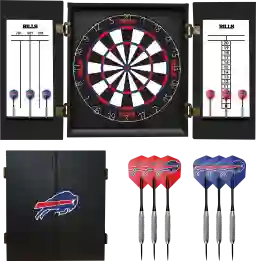 The Fan's Choice Buffalo Bills dartboard set features your favorite team logo and includes a premium 18-inch tournament sized, self-healing bristle dartboard. Self-healing bristle dartboards are some of the longest lasting boards on the market, since the holes close up after each dart is removed. This hanging dartboard cabinet will look great in your fan cave or any room that your family and friends gather. It's easy to assemble and the cabinet comes preassembled and ready to hang on the wall. Secure the dartboard and you are ready to have hours of enjoyment.