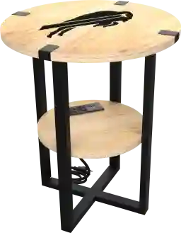 The Buffalo Bills laser etched round side table features a modern design that seamlessly blends with various decorative styles. It offers a convenient functionality for charging up to four devices at one time. The 2-Tier shelf also provides ample space to store your TV remote and other small items. Whether you are a Bills fan or simply appreciate well-crafted furniture, this side table is a versatile addition to any room. Customer assembly is required.