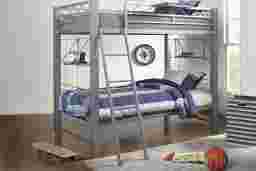 Give your children an ultra-cool sleeping space that they can customize at will! Constructed of metal with a gray finish, the Build-a-Bunk twin/twin bunk bed adds an instant dash of industrial style with its clean, minimalist look. And this bunk is so much more than the typical bunk bed. It has a highly customizable, space-saving design that includes a basket, short bookshelf, long bookshelf, and a tray in a bold blue finish. Each of these pieces is removable and can be adjusted on the left or right side of the bunk, depending on preference or room layout. You can use the bookshelves for books, trophies, or other trinkets. The basket is a great place to store games or homework close by, and the tray can easily accommodate workbooks or snacks. Mattresses and foundations (if required) sold separately.