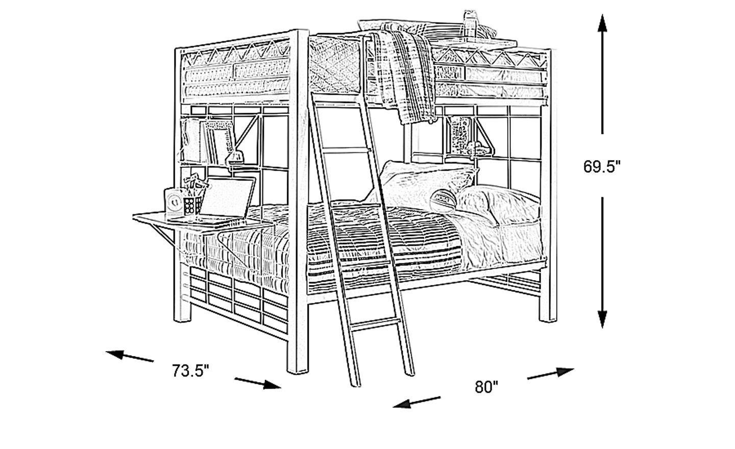 Give your children an ultra-cool sleeping space that they can customize at will! Constructed of metal with a gray finish, the Build-a-Bunk full/full bunk bed adds an instant dash of industrial style with its clean, minimalist look. And this bunk is so much more than the typical bunk bed. It has a highly customizable, space-saving design that includes a basket, short bookshelf, long bookshelf, a tray, and even a basketball hoop in a bold blue finish. Each of these pieces is removable and can be adjusted on the left or right side of the bunk, depending on preference or room layout. You can use the bookshelves for books, trophies, or other trinkets. The basket is a great place to store games or homework close by, and the tray can easily accommodate workbooks or snacks. As for the basketball hoop, it combines form and function, creating an easy outlet for play. Mattresses and foundations (if required) sold separately. Bunk shown is twin over twin.