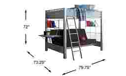 Give your child an ultra-cool sleeping space that they can customize at will! Constructed of metal with a gray finish, the Build-a-Bunk full/futon loft bed adds an instant dash of industrial style with its clean, minimalist look. It has a highly customizable, space-saving design that includes a basket, short bookshelf, long bookshelf, a tray in a bold blue finish. Each of these pieces is removable and can be adjusted on the left or right side of the bed, depending on preference or room layout. The futon is a great place for friends to chill, or used as a sleeping space for overnight guests (futon mattress included). You can use the bookshelves for books, trophies, or other trinkets. The basket is a great place to store games or homework close by, and the tray can easily accommodate workbooks or snacks. Mattress and foundation (if required) sold separately. Basketball hoop not included.