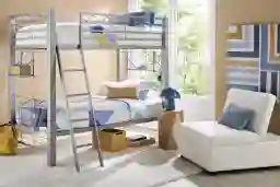 Build-a-bunk Gray Twin/twin Bunk Bed With Blue Accessories