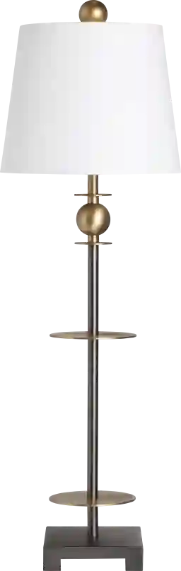 This lamp is a sophisticated fusion of Mid-Century Modern poise and Art Deco-inspired drama. The stacked bronze disks and warm brass accents provide a curated, architectural look that pairs beautifully with contemporary, transitional, or retro-inspired interiors. The crisp white shade offers a clean contrast, making it versatile enough to brighten a moody, executive home office or act as a focal point in a minimalist living room.