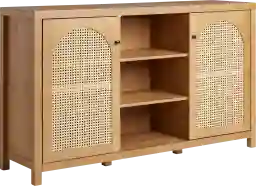 Yes, this versatile piece is designed for multi-functional use. While it serves beautifully as a dining room buffet, it includes a discreet cutout back specifically for cable management, allowing it to function as a stylish media console in a living room or studio apartment. The rattan door panels provide a "breathable" aesthetic that adds warmth and texture without overwhelming a compact room.