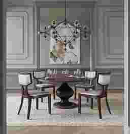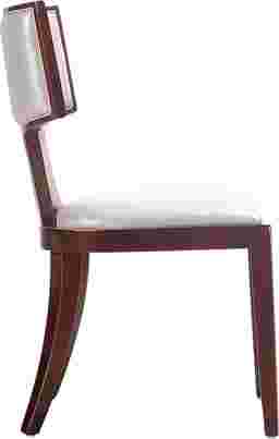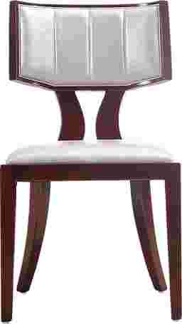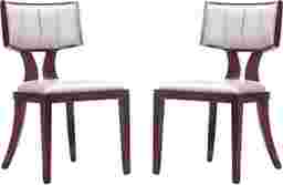 Uniquely sophisticated. Dating back to ancient Greece, the classic klismos style seat gets a fresh update in the Bullnite silver side chair, set of 2. The timeless design is iconic and practical, distinguished by its horizontal back panel and intriguing segmented construction. Fluted accents on tightly upholstered panels contribute a crisp, sophisticated air to its balanced lines. Though austere, its unconventional silhouette is utterly fascinating, delivering a dramatic impact to any dining room.