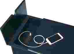 This table is designed to function as a discreet charging hub. A flip-top cover conceals a power bank equipped with two standard outlets and two USB ports. This allows you to power laptops and mobile devices directly from the tabletop, eliminating the need for long, unsightly cords stretching across your floor to distant wall outlets.