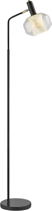 The Burdeno Road Black Floor Lamp features a unique double glass design-an inner frosted marble-finish glass encased in a crystal-clear outer shade, creating the look of a sculptural art piece. When lit, it radiates a warm, inviting glow that transforms any space into a sophisticated sanctuary. The matte black frame and solid marble base are elevated by antique brass accents, striking the perfect balance between modern elegance and timeless charm. Partial assembly may be required.