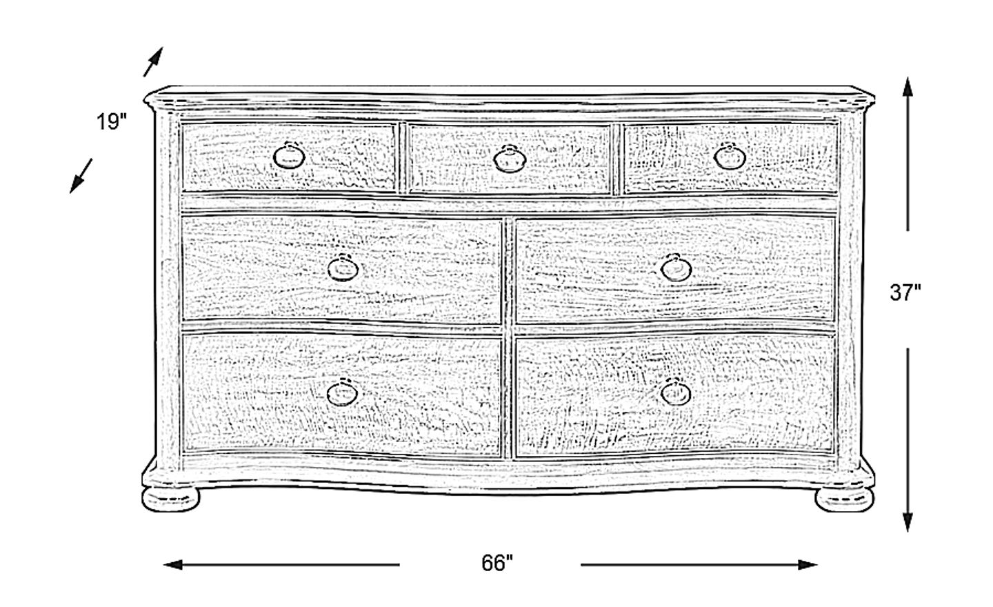 Traditionally designed, the Burnette dresser lends storage and style to your bedroom. Crafted of wood solids and mango veneers, this piece brandishes a warm brown cherry finish. Each of its seven drawers feature stately ring pulls with a pewter gray finish. Classic bun feet add detail to complete its stunning silhouette.