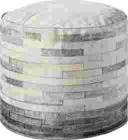 This modern Burvan pouf with a geometric, faux cowhide design can be used as an accent piece, an ottoman, or extra seating in your living room or bedroom. The ivory and grey-toned pouf measures 20"W x 20"D x 20"H and is machine-woven of easy-to-clean polyester.