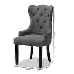 Generate an atmosphere of grace for every meal with the stunning Bushire dining chair. This set includes two chairs made from sturdy wood. Elegant button tufting framed by smooth curves create a lovely display while miniature armrests offer convenient comfort. The Bushire utilizes curved legs for excellent stability and support that forms a graceful silhouette. A remarkable blend of style and comfort, the Bushire dining chair elevates any dining experience. Customer assembly required.