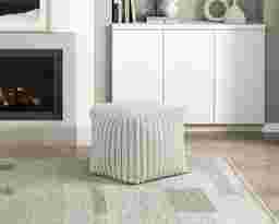 Whether the Buwel serves to provide stylish accent to your home's decor, convenient seating when the need arises, or as perfect place to put up your feet, the square accent pouf's versatility of purpose makes it a convenient addition to your space. The pouf is covered in plush off-white wide wale corduroy fabric upholstery. Customer assembly is required.