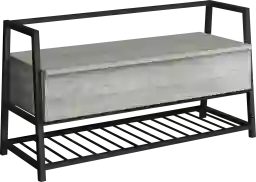 Keep your entryway or hallway clutter free with this Byestreet versatile storage bench. The hinged top lifts to reveal a spacious interior storage cabinet. Under the bench is a shelf for neatly organizing shoes or other items. Conveniently sized and big in functionality, this storage bench in a grey wood-look finish with a black metal frame is brimming with style and substance. Customer assembly is required.