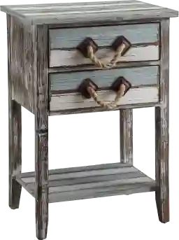 This table is specifically designed as a character piece for coastal or lake living. The weathered wood finish and nautically inspired rope pull knob provide a rustic, lived-in charm that complements seaside and waterfront aesthetics. While it captures the spirit of the coast, it is intended for indoor use to maintain its quality.