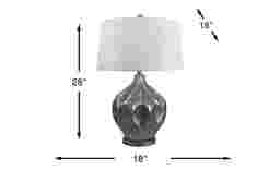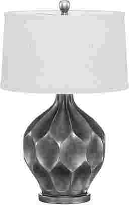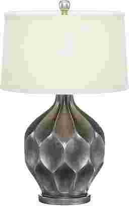 The contemporary design of the Byrens table lamp makes it an inspired choice to light up any room in your home. A combination of curved and concave shapes brings new levels of dimension to the lamp's Hydrocal base. Complementing the brushed gray finish, it is topped with an off-white drum shade. This lamp accommodates one 150 watt maximum bulb (not included) with a 3-way switch to adjust the brightness.