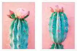 This set is designed with a casual and modern aesthetic in mind. The "blushing" pink palette and botanical cactus subject matter are perfect for Boho-chic, contemporary, or Southwestern-inspired decors. The clean lines of the white matte frames allow the artwork to blend seamlessly into light-filled rooms or spaces with a minimalist design.