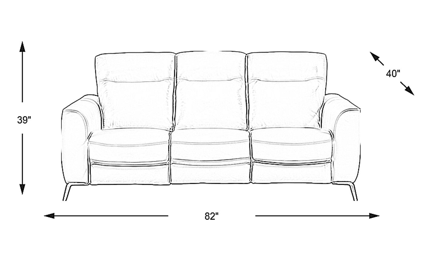 Sleek style meets premium reclining features on the Calabra sofa. Upholstered in supple top grain leather where the body touches, the ice white sofa boasts dual power headrests and footrests that can be raised and lowered at the touch of a button. Chic radius arms and shaped chrome legs create a contemporary aesthetic. Upholstery: Top grain leather where the body touches and vinyl sides and backs.