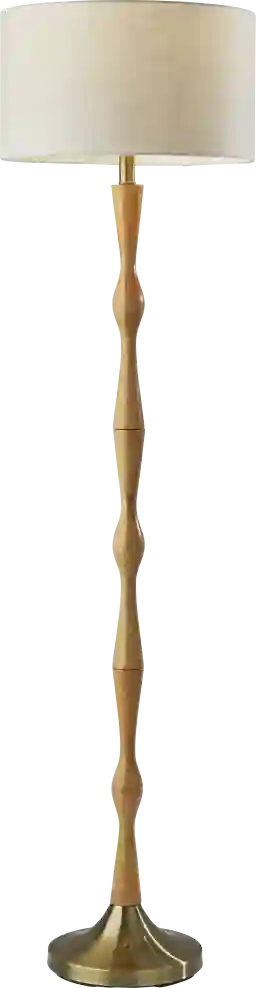 Update your space with a touch of modern bohemian style with the Calawba Way floor lamp. The lamp body is made up of a natural oak wood a durable material that reveals an attractive wood grain. A tapered antique brass metal base provides a decorative accent while also keeping the lamp strong and sturdy. An off-white textured fabric drum shade is the perfect compliment to these soft toned wood and metal materials. Partial assembly may be required.