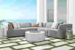 The good times get even better with the Calay sectional's versatile style and endless reconfigurability. This modular outdoor seating set from Cindy Crawford Home features ash-colored slipcovers in UV-resistant, solution dyed Sunbrella fabric. Each seat frame has attached seat and back cushions, water-repellant upholstery and an individual cover, enabling every piece to be used separately or repositioned and connected as desired. Family cookouts, intimate get togethers and everyday relaxation are incredible every time when the seating arrangement you want is always at your fingertips. This set includes three corner wedges, two armless chairs and matching slipcovers. To clean Sunbrella fabric cushions remove dirt and spray on cleaning solution (water and mild soap), then use a soft bristle brush or sponge. Allow cleaning solution to soak into fabric and rinse thoroughly until soap residue is removed. Air dry. Do not dry clean.